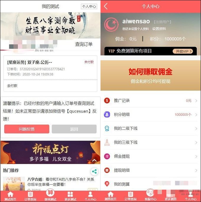 功能很完善的在线算命系统,经过多次的二次开发,所以代码可能繁冗,但是功能还是挺完善不错的,界面漂亮内容丰富,喜欢的朋友拿去研究研究,支付系统也比较完善,已对接大多数的支付通道。