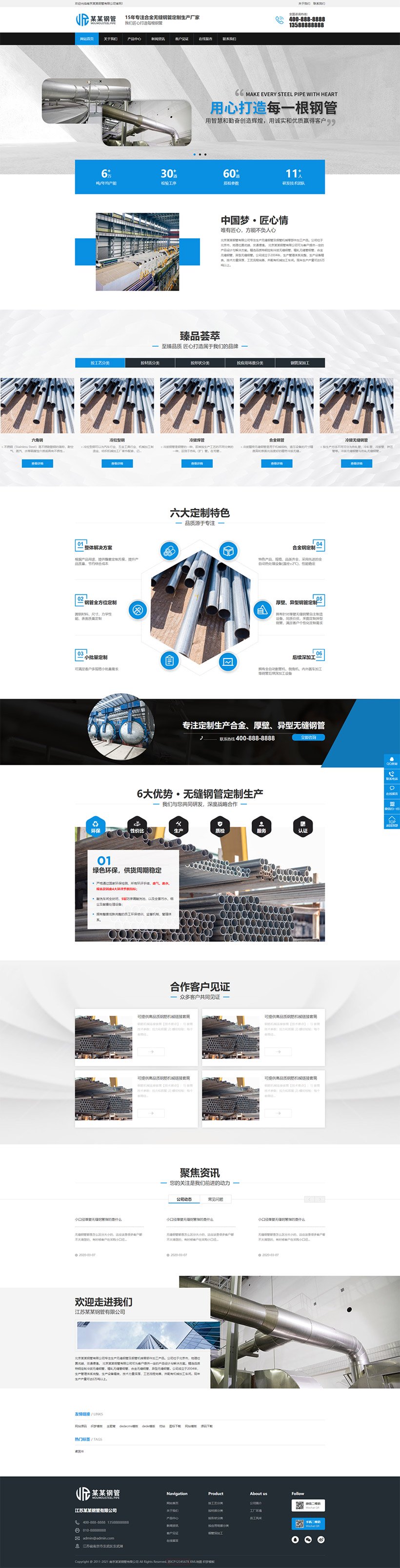本套织梦模板采用织梦新内核开发的模板,这款模板使用范围广,营销型无缝钢管金属制品类网站织梦模板 不锈钢管管道网站模板下载。不仅仅局限于一类型的企业,无缝钢管、不锈钢管管道类的网站都可以用该模板。