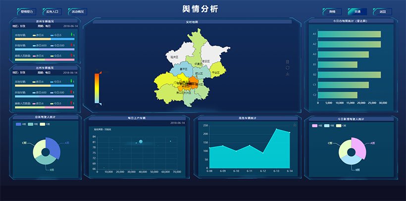 公安警务警情分析平台数据大屏展示模板,本模板包括舆情分析、警情警力、活动情况等,是一个非常全面的舆情分析数据大屏展示界面模板。