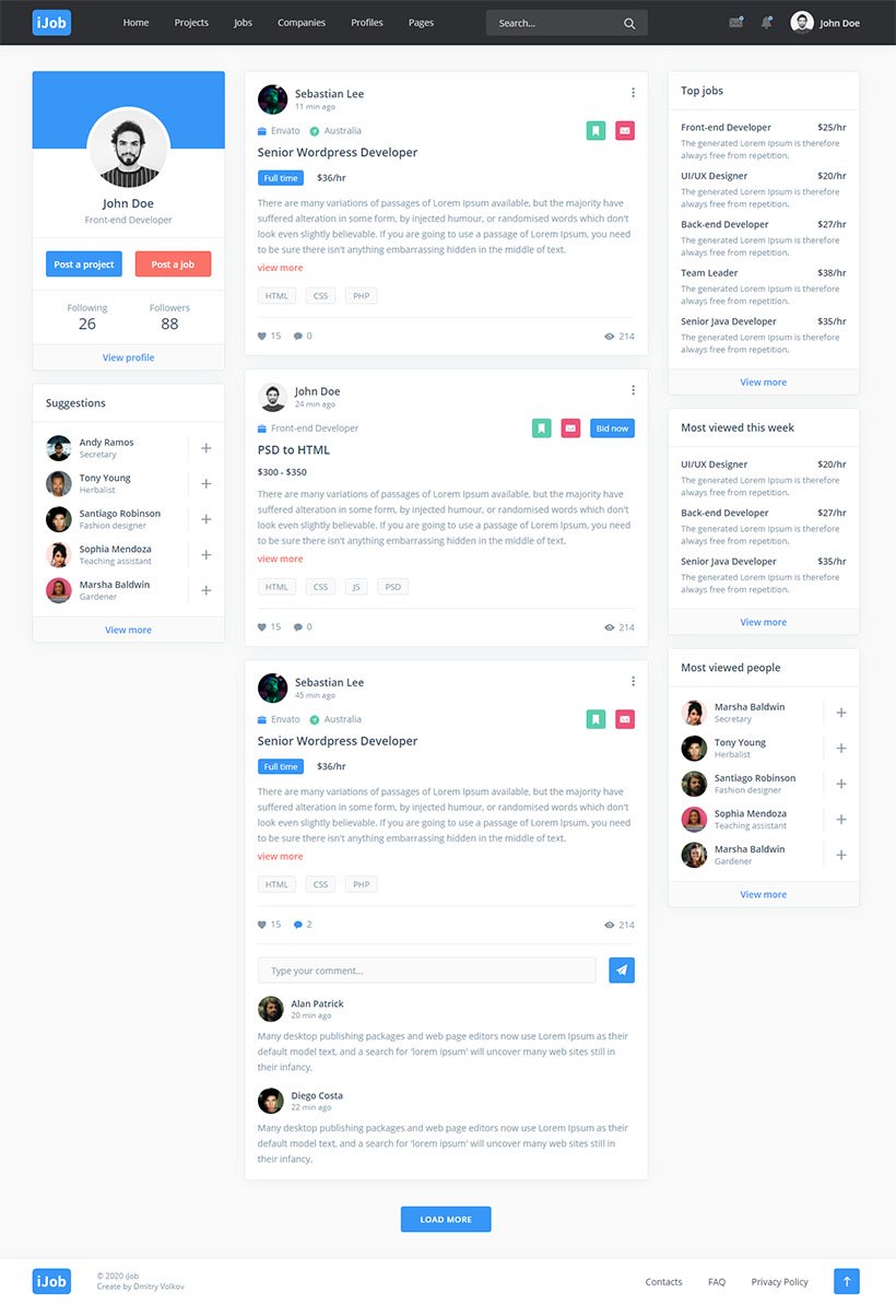 招聘平台网站模板 社交交友平台网站模板,这套Html模板可以做交友平台及招聘网站平台均可。自己看演示吧!