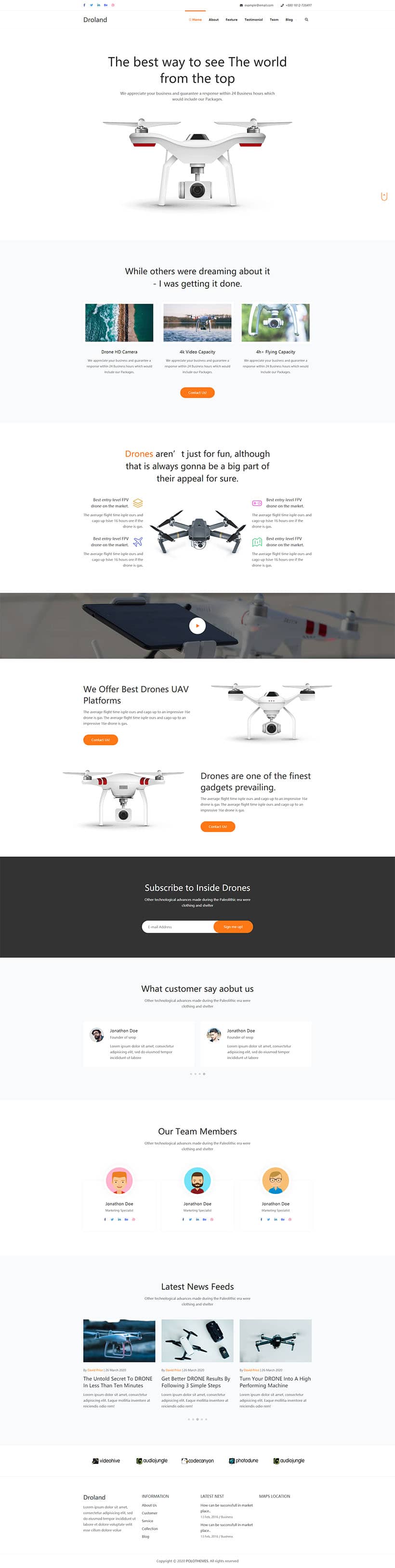 Bootcss响应式无人机类型网站模板,通用布局也可用于其它类型网站,无人机网站模板 电子航模网站模板。