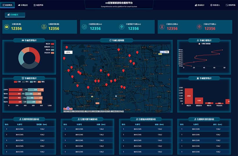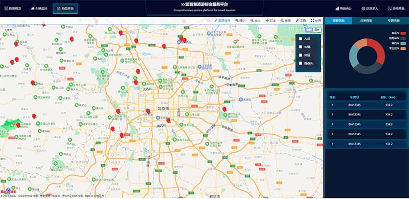 交通类大数据展示页面模板,基于es、百度地图实现的交通类大数据展示页面,智慧旅游综合服务平台数据大屏模板下载 智慧旅游系统源码。