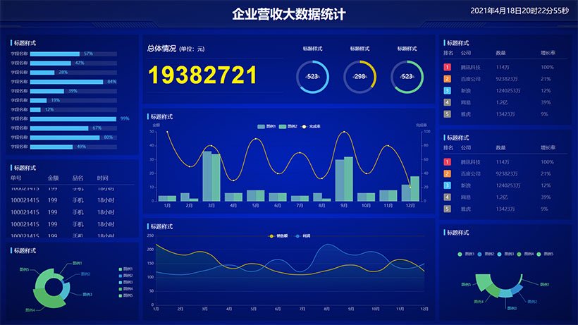 基于echarts图表的企业营收大数据统计模板,企业营收大数据统计大屏看台模板。