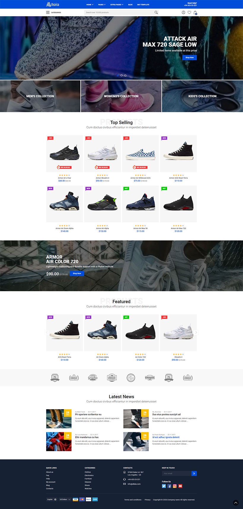 时尚运动鞋商城网页模板 响应式在线商店模版,本模板是运动鞋专卖商城模板,适合各类鞋子的在线销售,设计精美,商城全套页面均有,html页面共39个,四种首页风格。