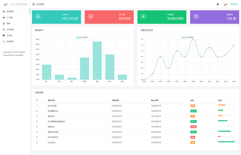 通用网站后台管理模板 响应式后台界面模板设计,清心自然的后台管理界面,轻量级管理后台模版。