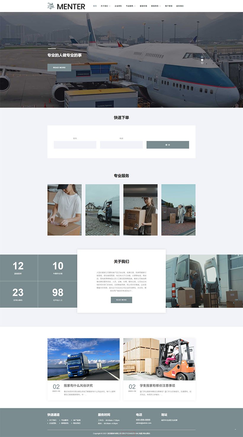 搬家家政公司大气网站模版 物流公司网站主题风格模版,适合搬家家政行业,物流公司,快递公司等企业网站。