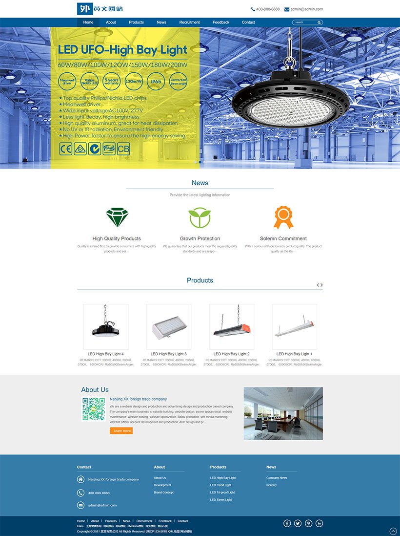外贸企业网站通用模版 外贸出口网站模版下载(英文),PbootCMS内核开发的网站模板,该模板适用于外贸灯具、LED等企业,当然其他行业也可以做,只需要把文字图片换成其他行业的即可;响应式,同一个后台,数据即时同步,简单适用!附带测试数据!