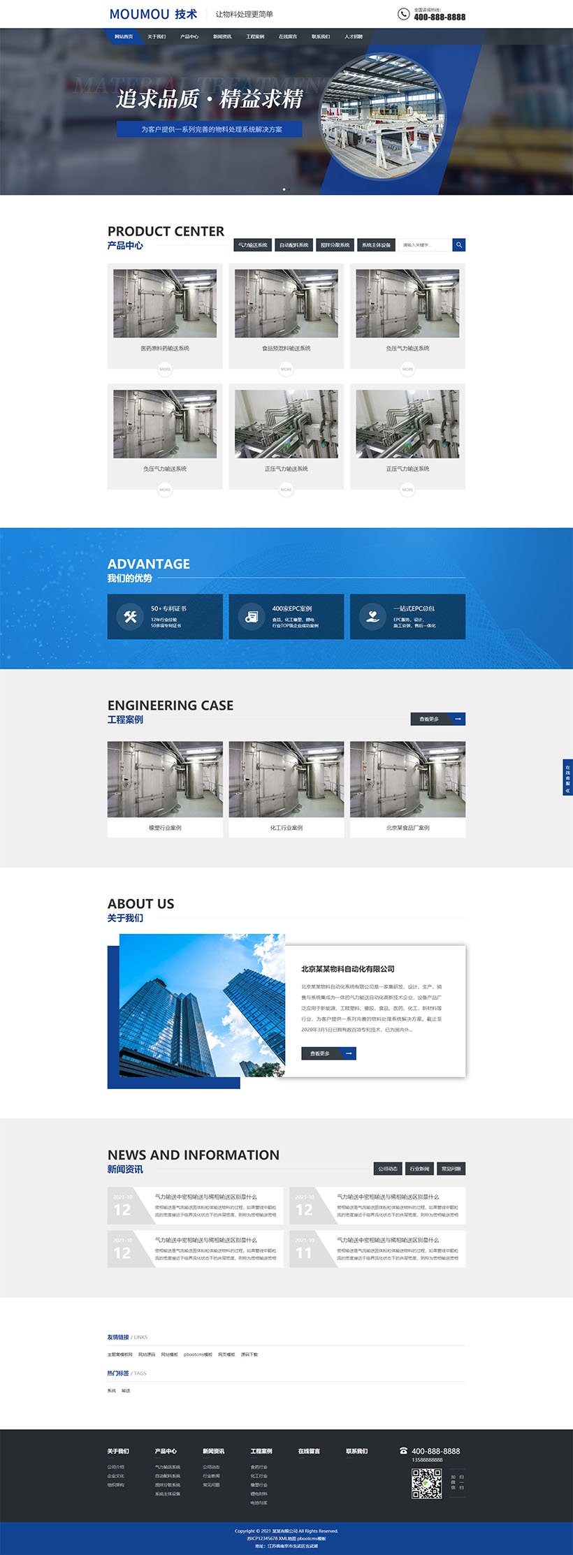 SEO营销型机械加工网站模版 机械设备网主页风格设计,PbootCMS内核开发的网站模板,该模板适用于营销型网站、机械设备网站等企业,当然其他行业也可以做,只需要把文字图片换成其他行业的即可;响应式,同一个后台,数据即时同步,简单适用!附带测试数据!