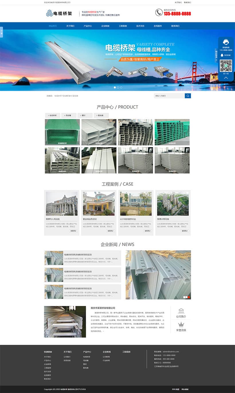 (PC+WAP)蓝色电缆桥架类网站PbootCMS模板 电缆钢结构五金机械网站源码下载,PbootCMS内核开发的网站模板,该模板适用于电缆桥架网站、五金钢结构网站等企业,当然其他行业也可以做,只需要把文字图片换成其他行业的即可;