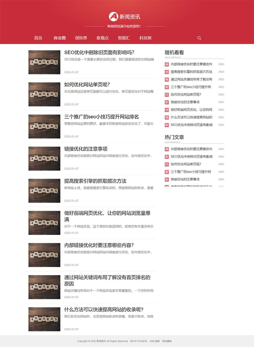 (自适应手机端)红色互联网科技新闻网站pbootcms模板 响应式文章博客类网站源码下载,PbootCMS内核开发的网站模板,该模板适用于科技新闻网站、文章博客网站等企业,当然其他行业也可以做,只需要把文字图片换成其他行业的即可;