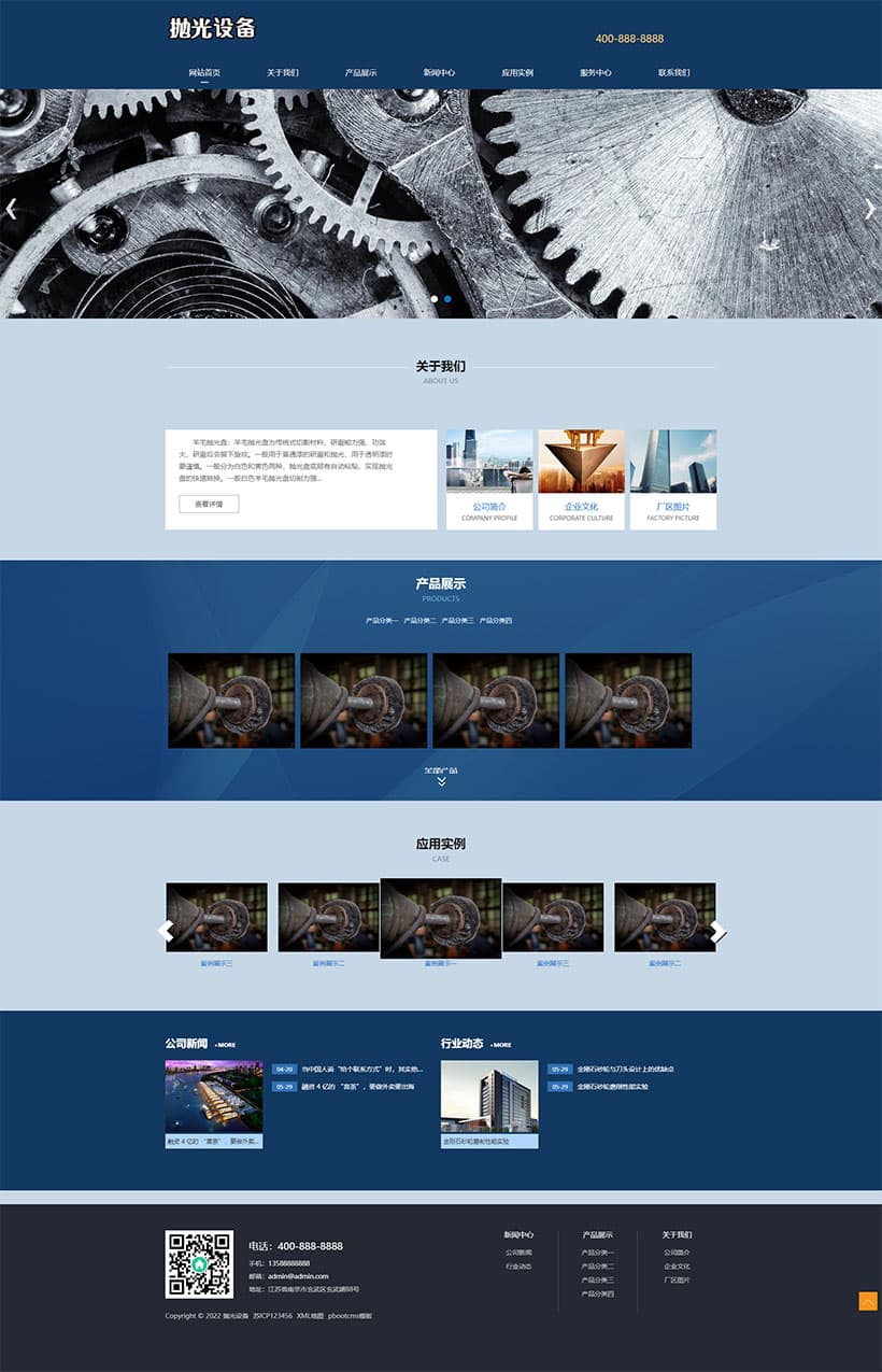 (PC+WAP)蓝色五金机械设备pbootcms企业网站模板 通用营销型网站源码下载,PbootCMS内核开发的网站模板,该模板适用于营销型网站模板、五金机械网站等企业,当然其他行业也可以做,只需要把文字图片换成其他行业的即可;