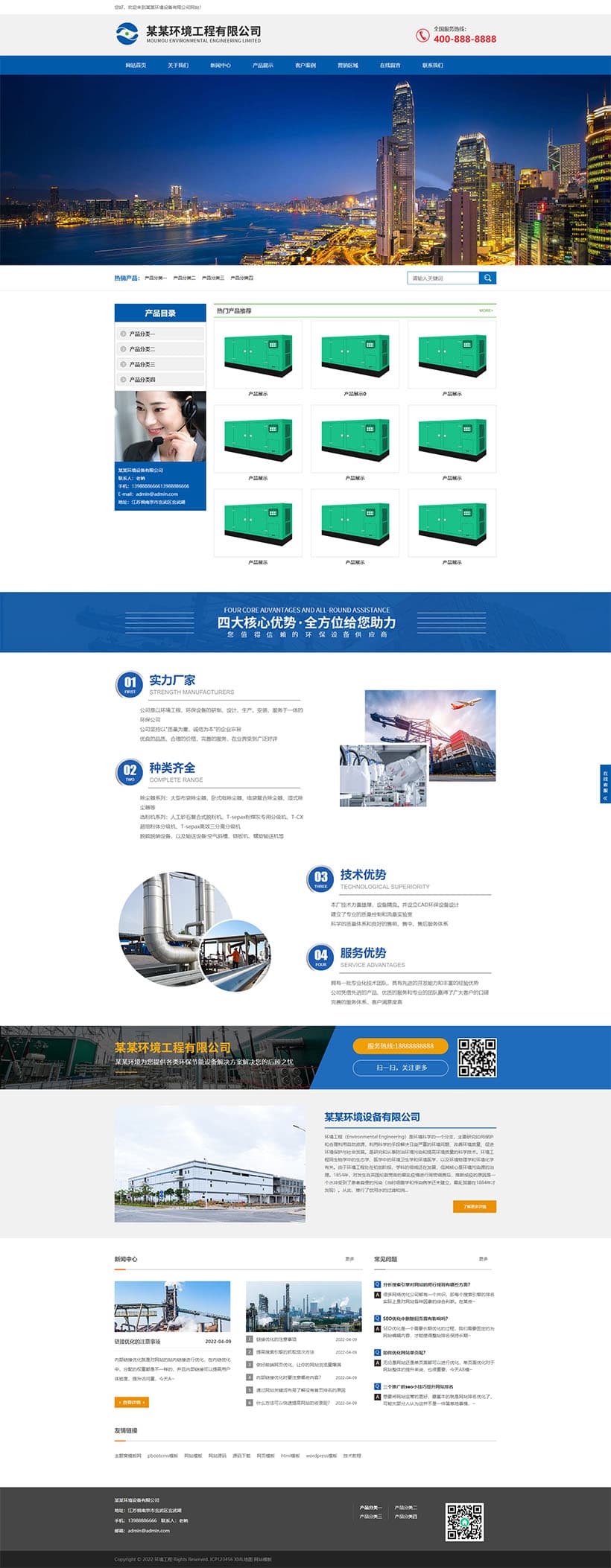 (自适应手机端)蓝色响应式环境工程设备pbootcms网站模板 html5环保设备网站源码下载,PbootCMS内核开发的网站模板,该模板适用于环境工程网站、环保设备网站等企业,当然其他行业也可以做,只需要把文字图片换成其他行业的即可;