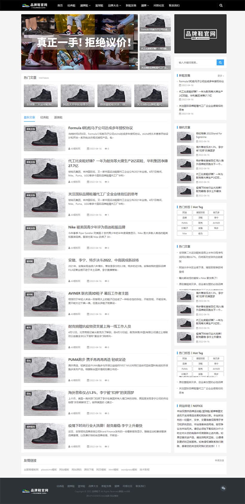 (自适应手机端)响应式黑色大气品牌鞋子货源资讯网站pbootcms模板 鞋类运营批发网站源码下载,PbootCMS内核开发的网站模板,该模板适用于货源资讯网站、鞋子运营批发网站等企业,当然其他行业也可以做,只需要把文字图片换成其他行业的即可;