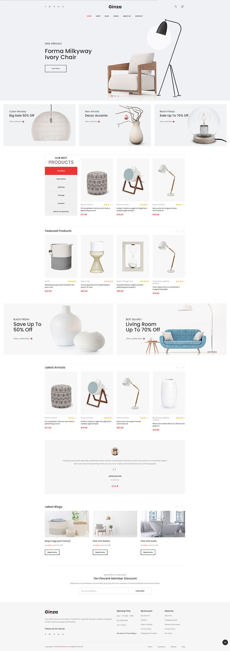 简约家具商城WordPress主题下载 家居商城模版下载,自适应(响应),WooCommerce,4个头部类型,布局搭建,Layer 幻灯片,WPML ,Mega 菜单,置顶菜单,2个博客布局,AJAX 联系表单,55个自定义布局搭建,SEO等。本wordpress模版适合电商行业使用,界面清爽时尚,适合服装、家具等行业,功能强大,美观大方。